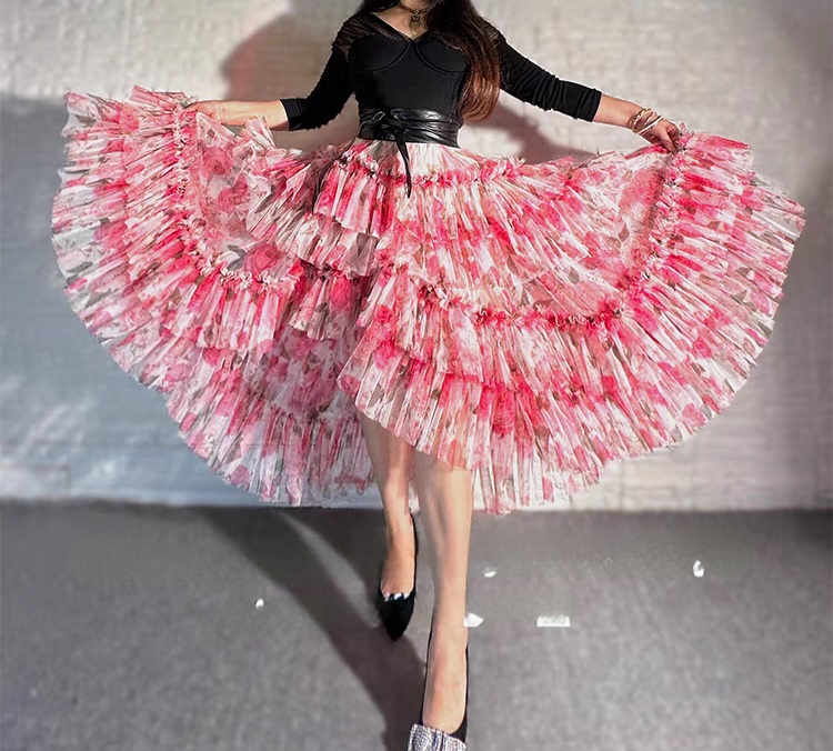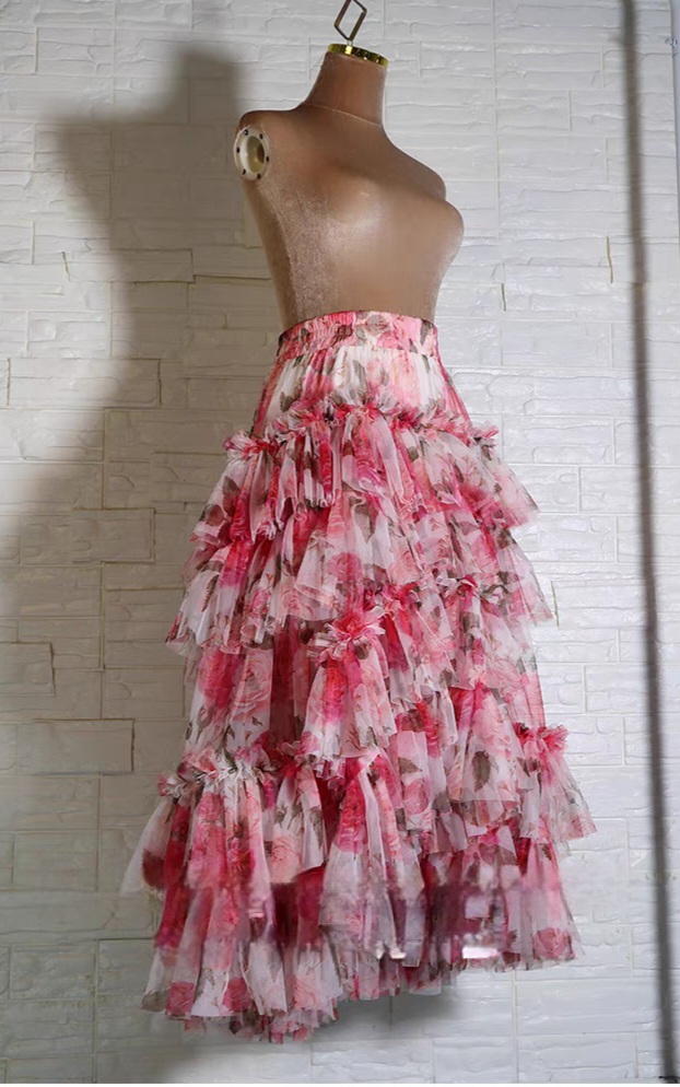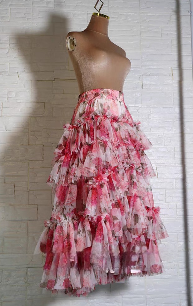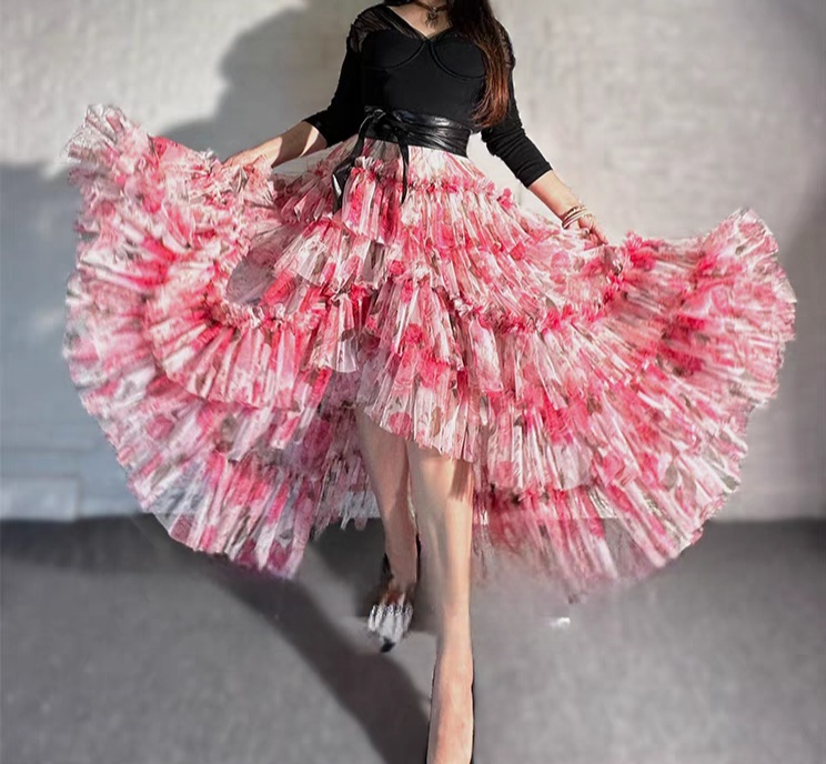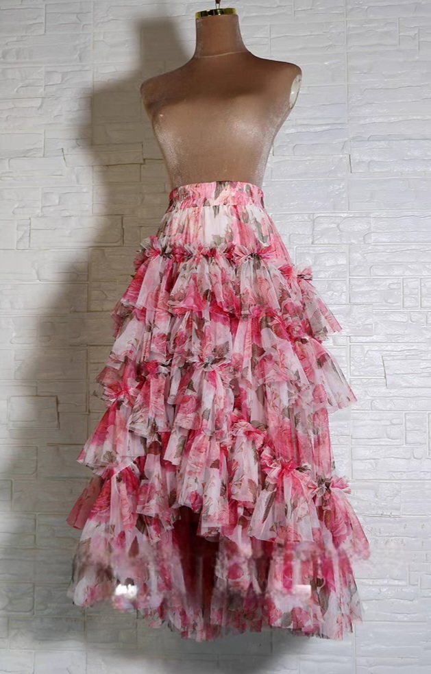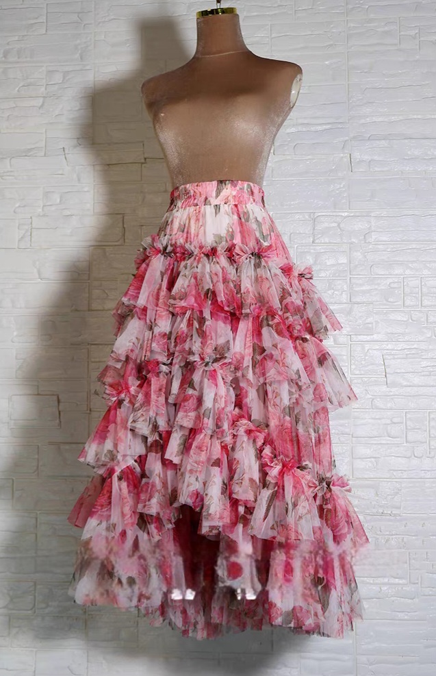 Women High low Layered Tulle Skirt Floral Pattern Tulle Maxi Skirt Wedding Party Maxi Skirt Outfit