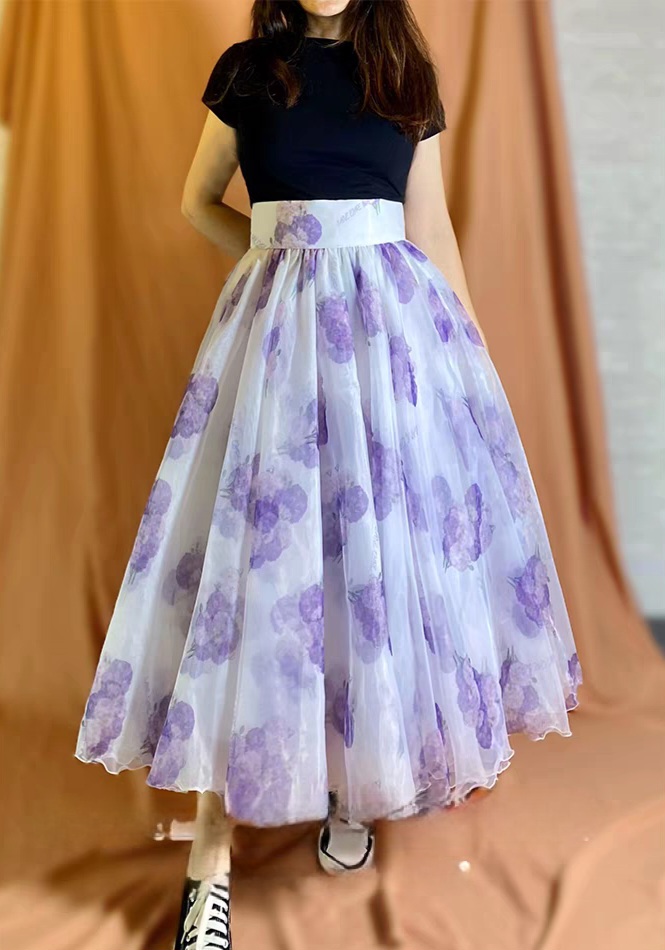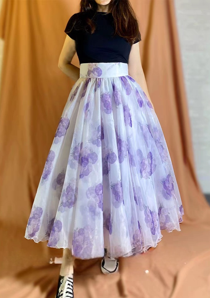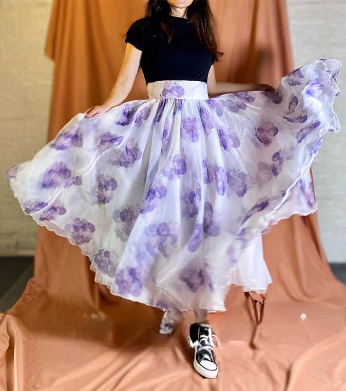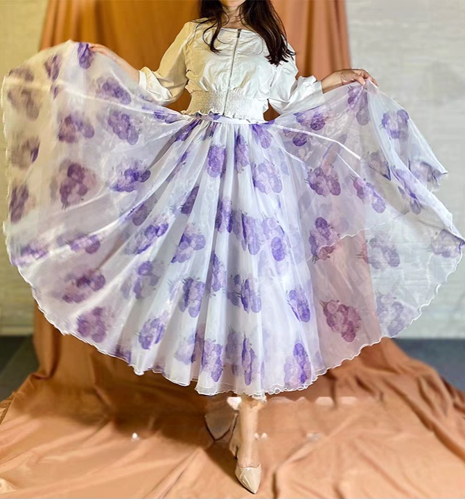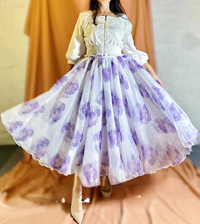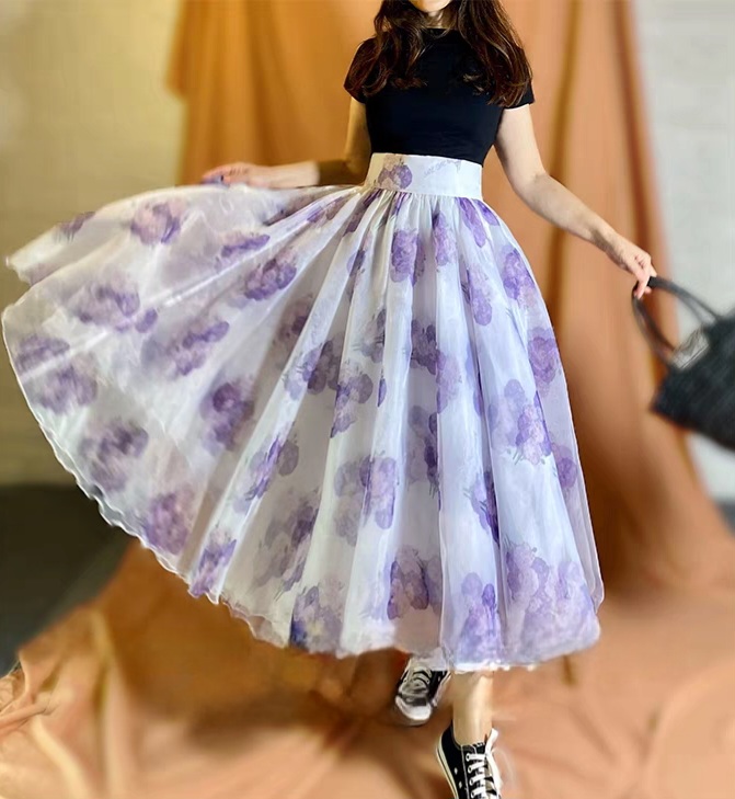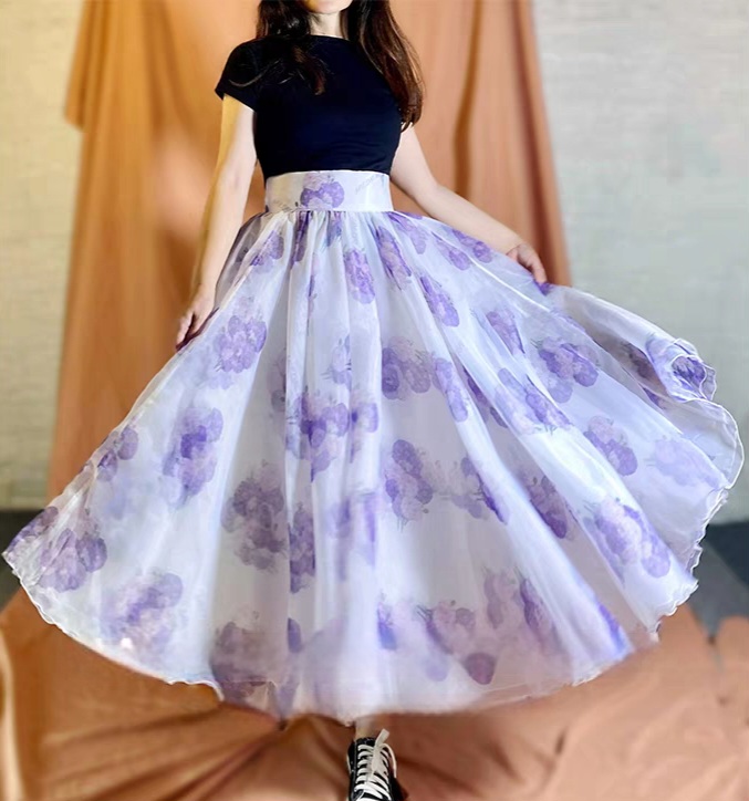 Purple Floral Tulle Midi Skirt Outfit Puffy Tutu Holiday Tulle Skirt Flower Tulle Midi Skirts Custom Plus Size