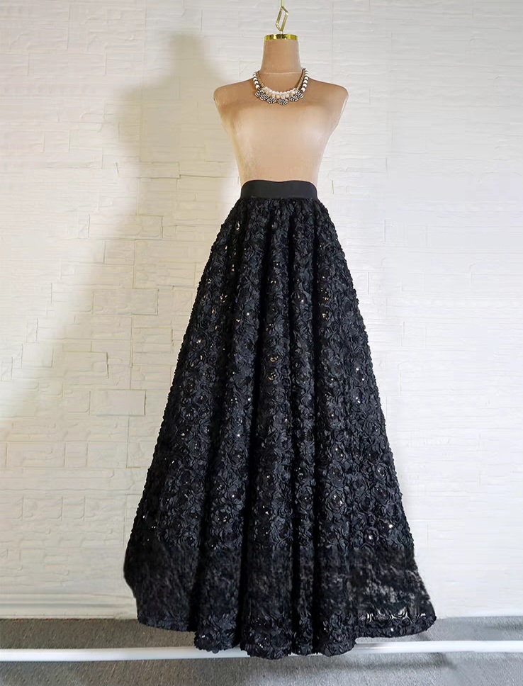 Women BLACK A-line Tulle Maxi Skirt Gowns High Waisted Floor Length Party Skirt Wedding Bridal Gowns