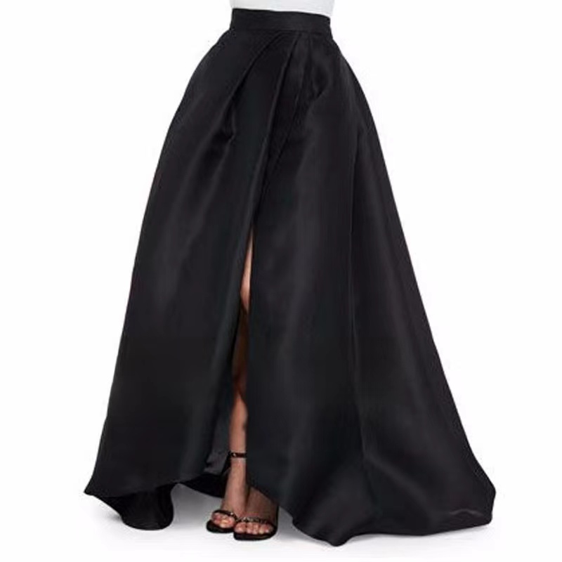 Black A-line Taffeta Skirt Outfit Women High Slit Formalwear Maxi-Length Elegant Black Skirt Custom Plus Size