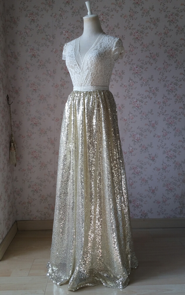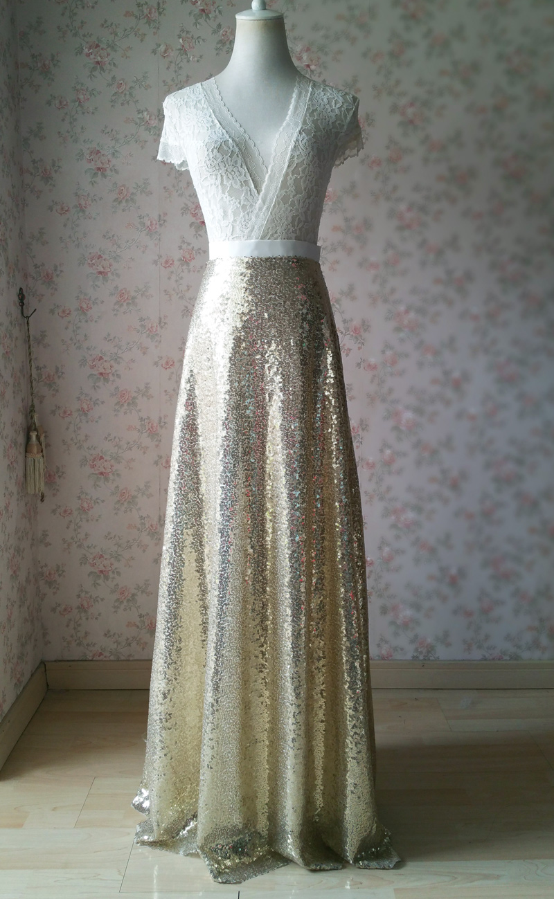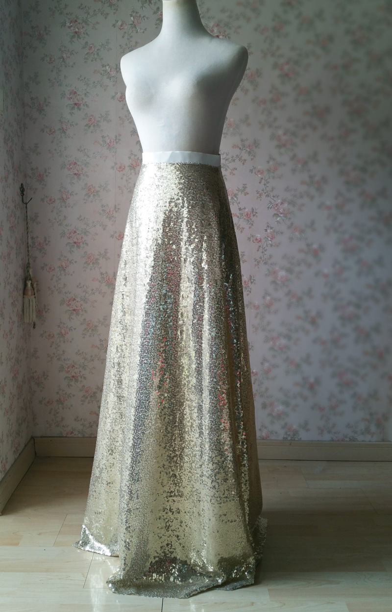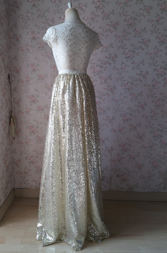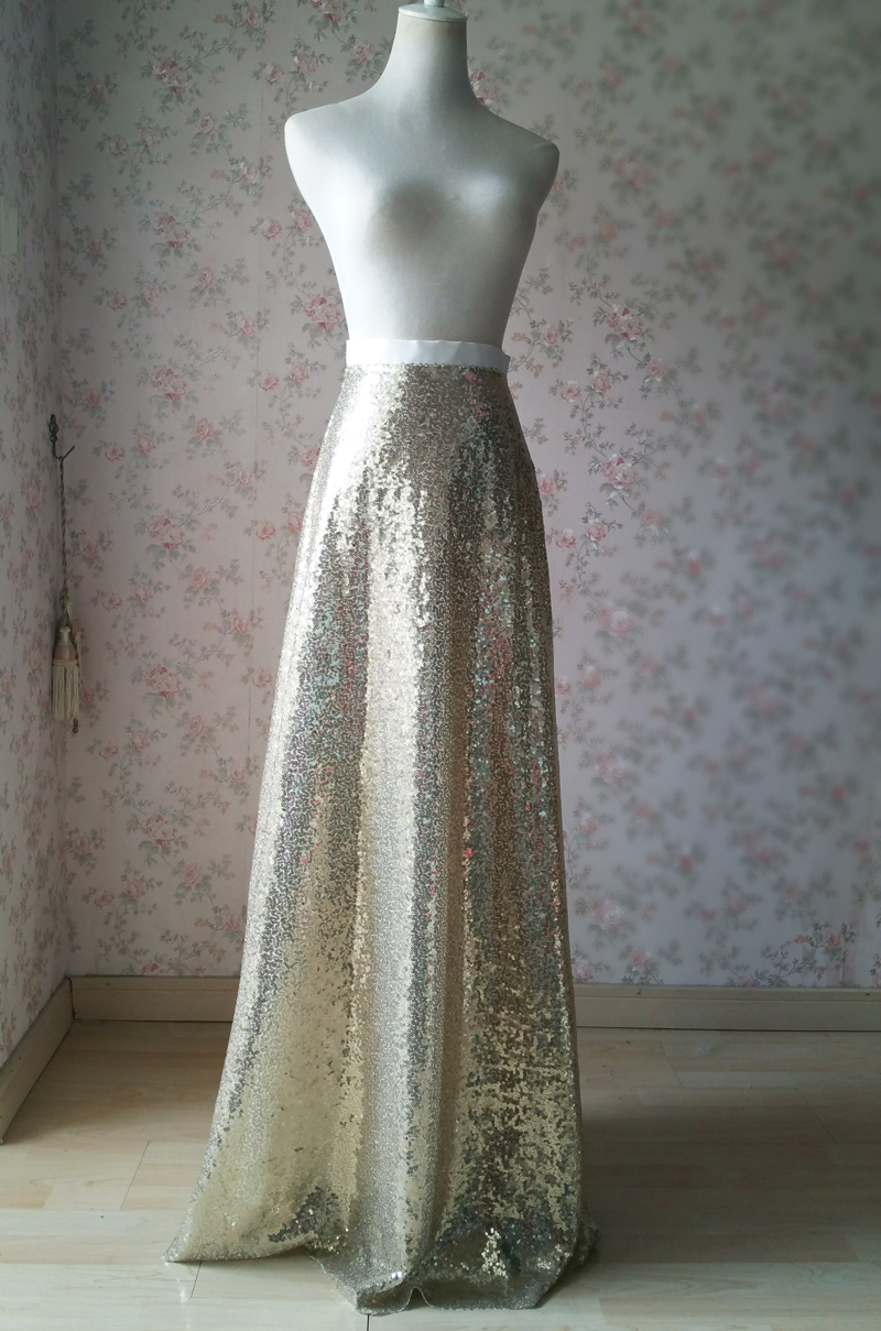 1) This is a very simple, chic and fashionable long maxi sequined skirt.