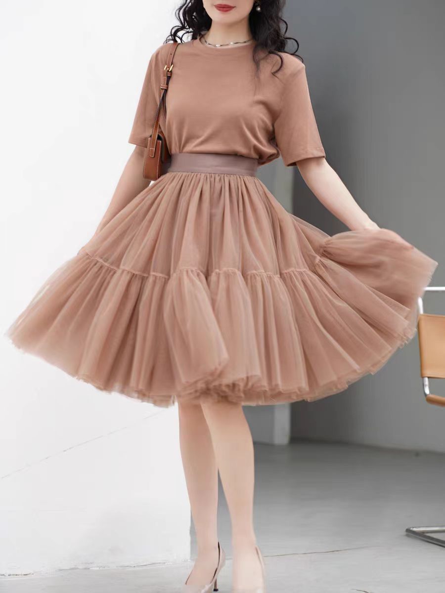 A-line Brown Knee Length Fluffy Tulle Skirt Outfit Women Custom Plus Size Layered Tulle Skirts