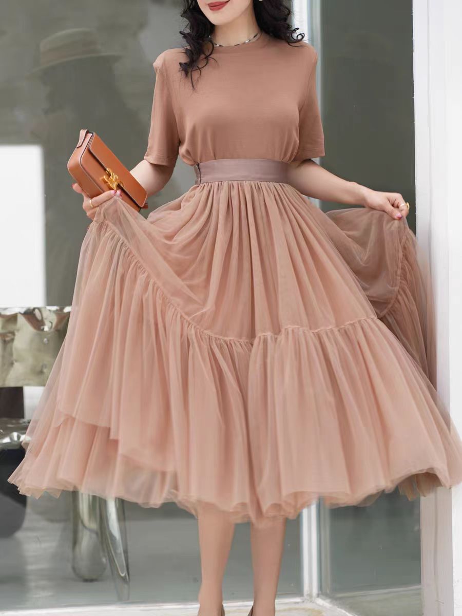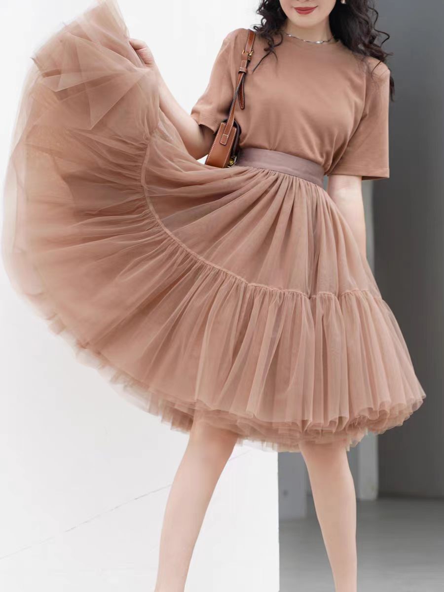 A-line Brown Fluffy Tulle Midi Skirt Holiday Outfit Women Custom Plus Size Layered Tulle Skirts
