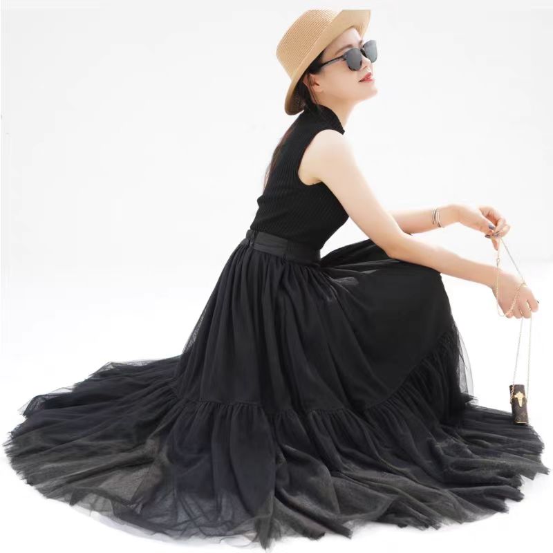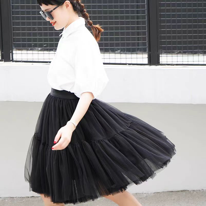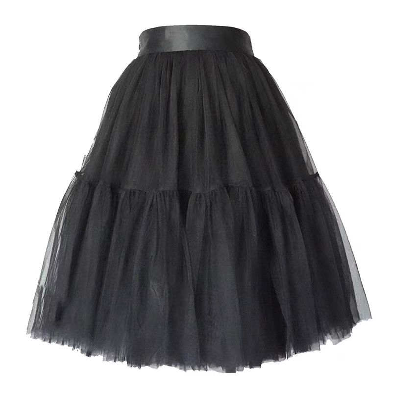 Black A-line Knee Length Tulle Skirt Holiday Outfit Women Custom Plus Size Black Layered Tulle Skirts