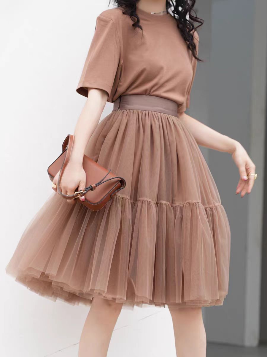 Women BLACK Ruffle Layered Tulle Skirt High Waisted Knee Length Tull Skirt Outfit Custom Plus Size Tulle Skirt A-line Puffy Tulle Holiday Skirt Plus Size, Brown, Mint Green, Purple, Blush Pink, Navy blue, many colors for choices