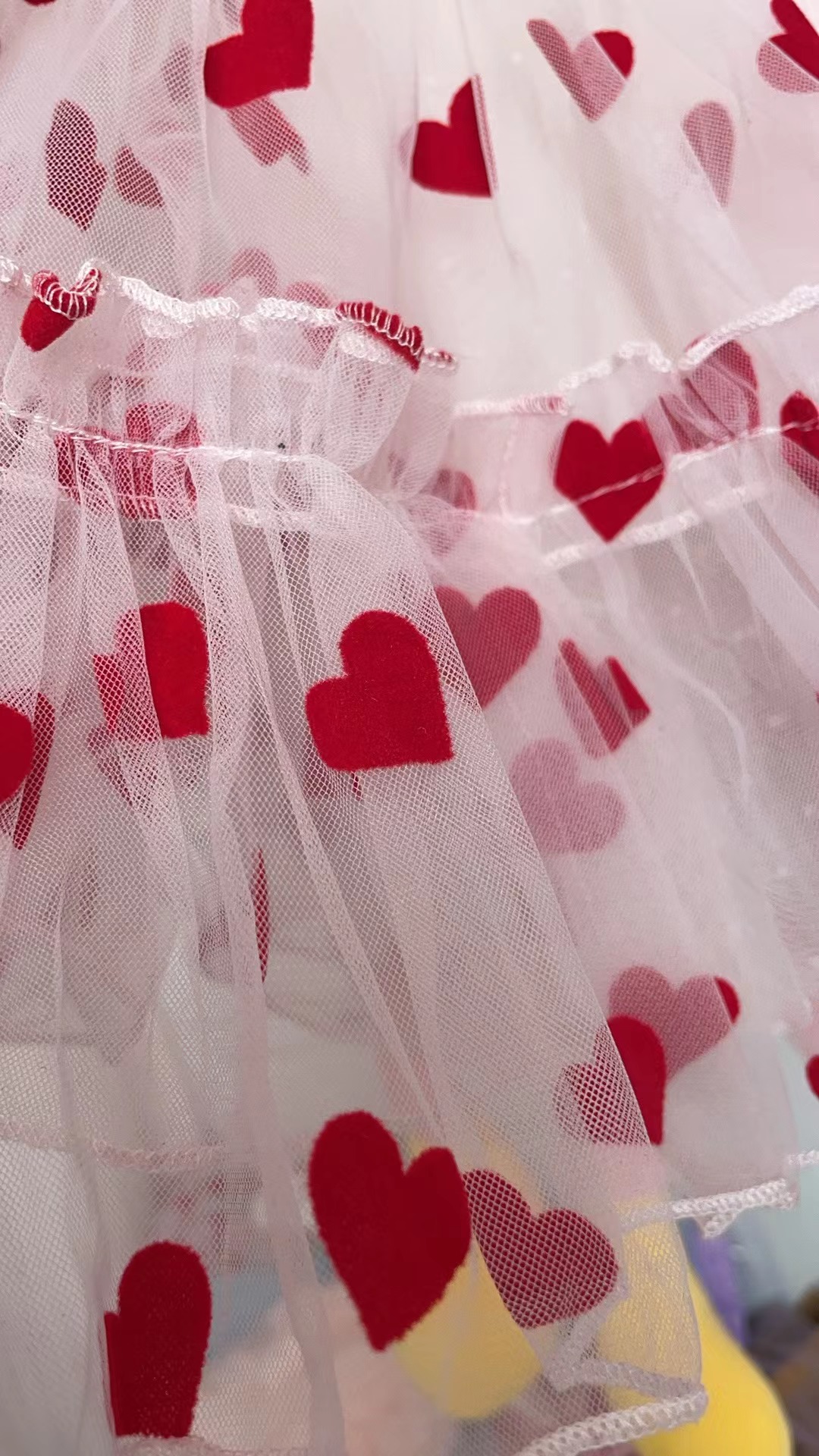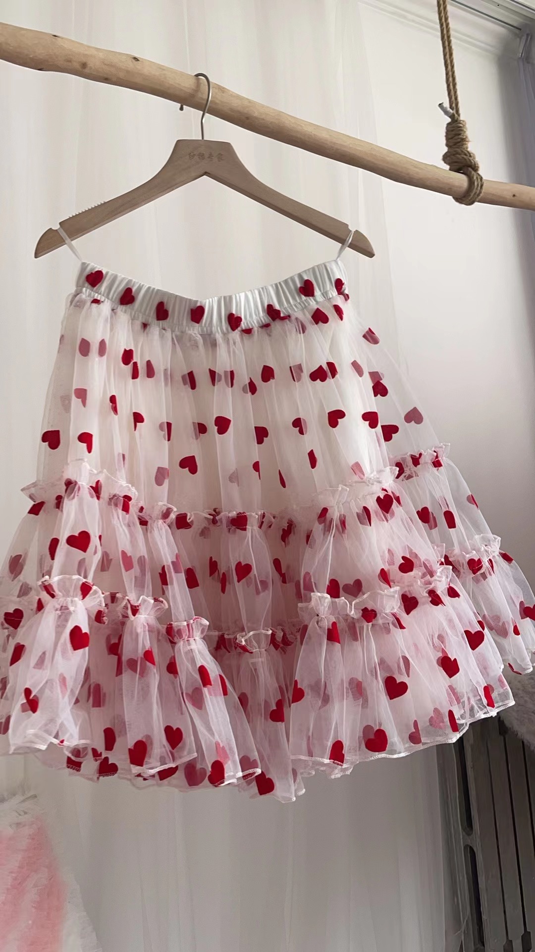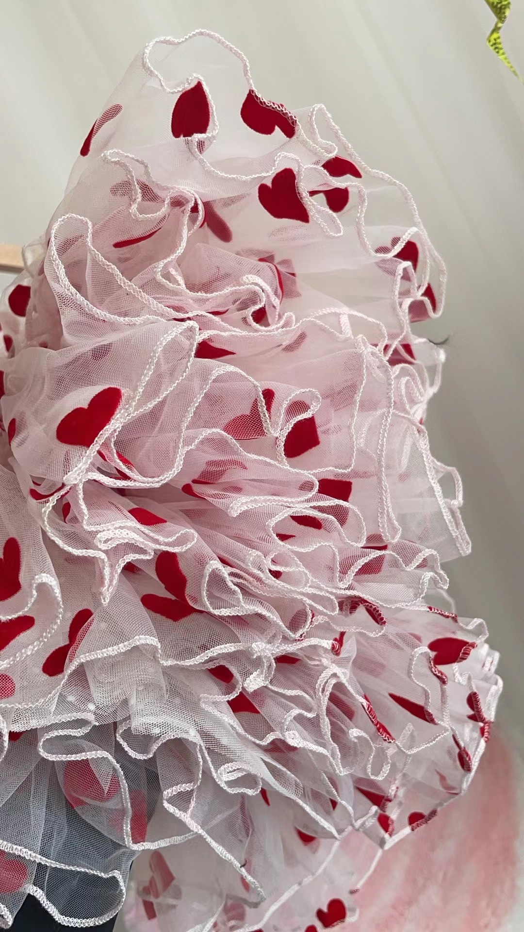 White Layered Tulle Midi Skirt with Red Heart Women Girl Custom Plus Size Fluffy Tulle Tutu Skirt