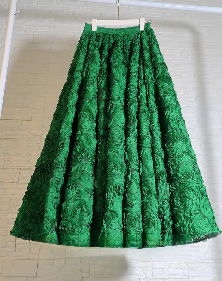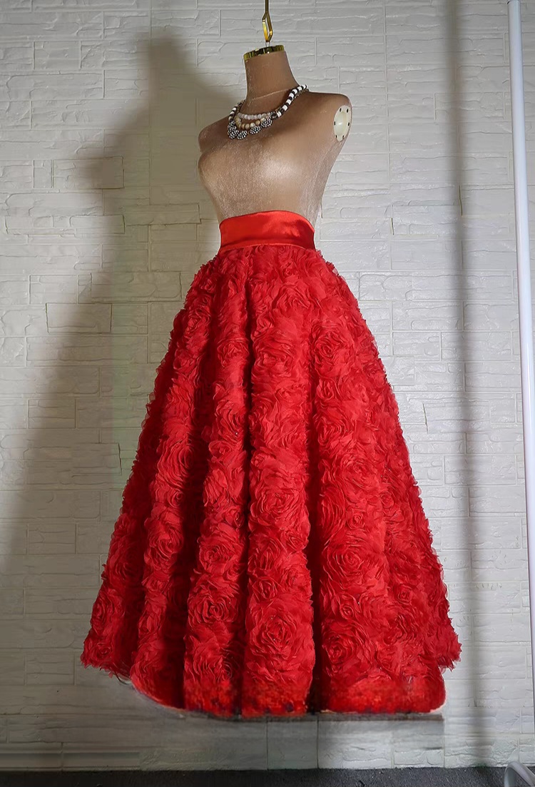 PINK FLOWER Long Tulle Skirt Outfit Women A-line Polyester Ruffle Floral Skirt Romantic Custom Plus Size Wedding Tulle Skirt