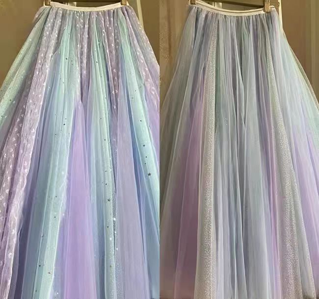 Blue Purple Fluffy Tulle Skirt Outfit Adult Girl Rainbow Tulle Skirt Holiday Outfit Rainbow Tutu Maxi Skirt Custom Plus Size