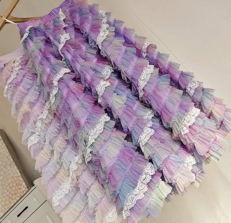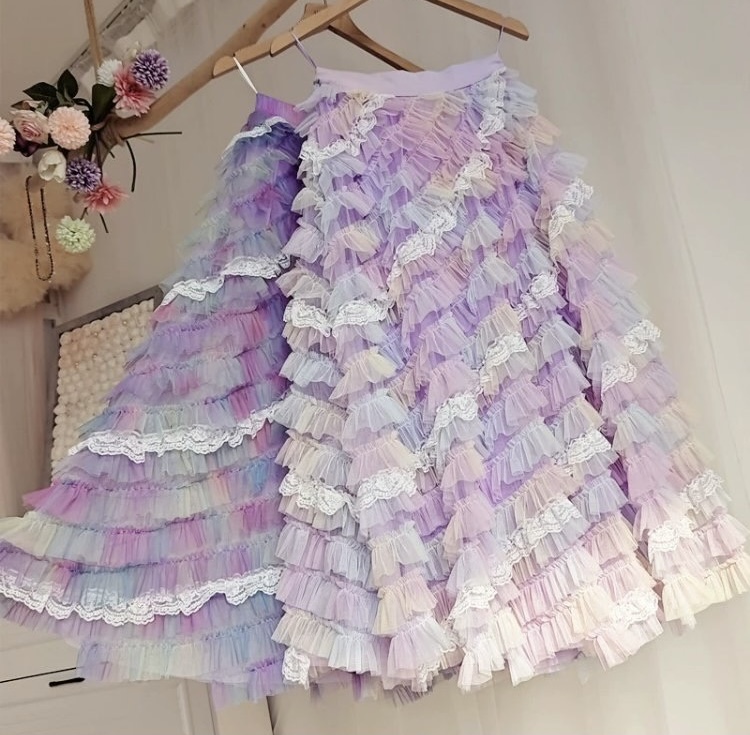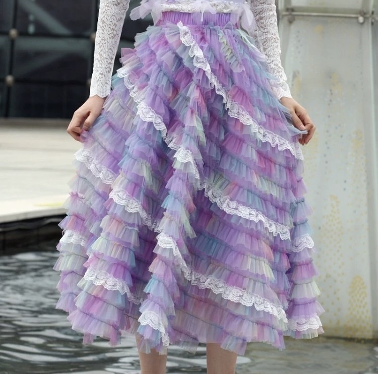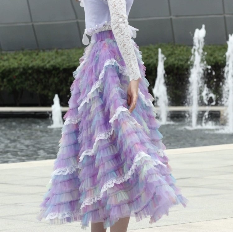 Light Purple Layered Tulle Skirt Rainbow Tutu Tulle Maxi Skirt Custom Plus Size Holiday Outfit