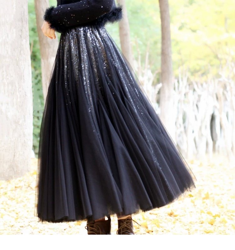 Black Sequin Skirt Outfit, Sparkle Tulle Skirt, Plus Size Tulle Maxi Skirt, Sequined Party Skirt