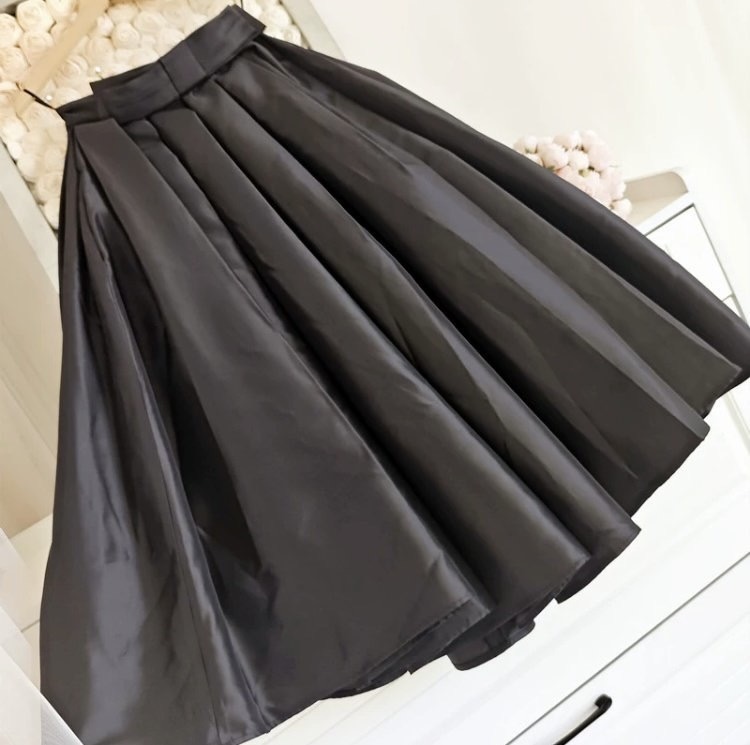 Women Black Satin Skirt, A-line Satin Skirt, High Waisted Pleated Midi Skirt, Women Custom Plus Size Pleated Skirt , Custom available