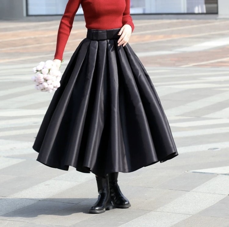 Women Satin Skirt, A-line Satin Skirt, High Waisted Pleated Midi Skirt, Women Custom Plus Size Pleated Skirt , Custom available