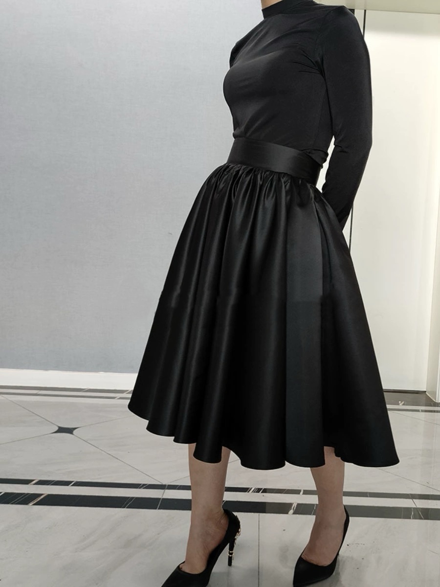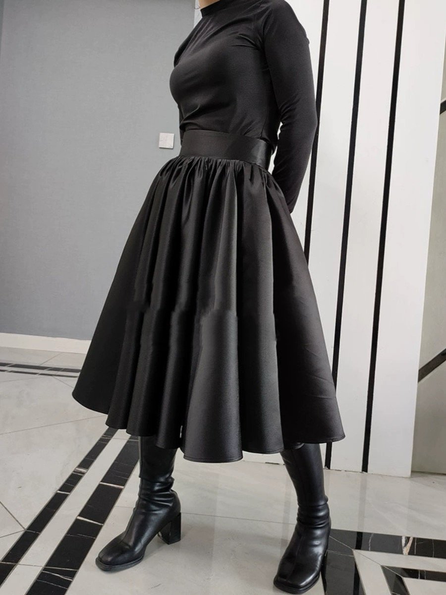 BLACK A-line Skirt , Women Pleated Midi Skirt , Plus Size Black Holiday Party Skirt