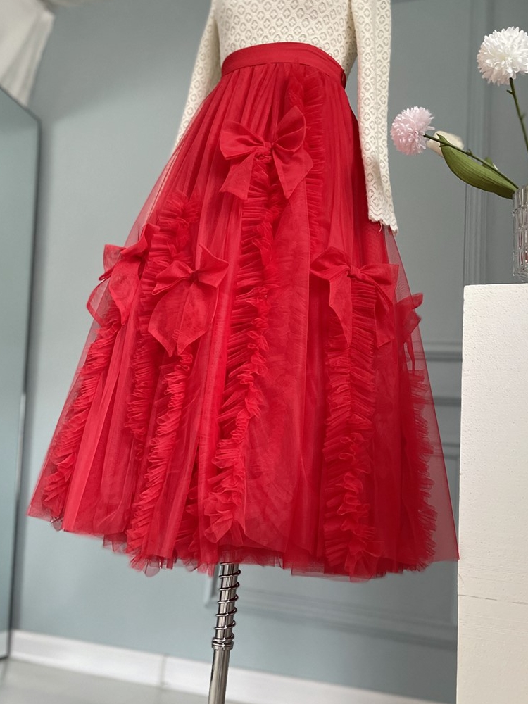 High-Low Tulle Skirt Outfit, Red Layered Tulle Tutu Skirt, Plus Size Wedding Party Tulle Skirt