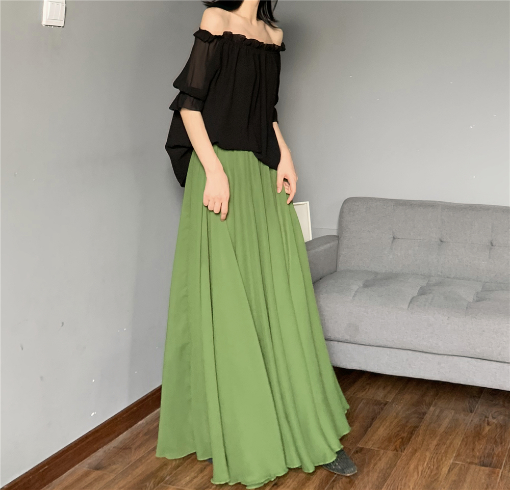 OLIVE GREEN Full Long Chiffon Skirt, Summer Beach Maxi Chiffon Skirt Outfit, Plus Size Chiffon Skirt