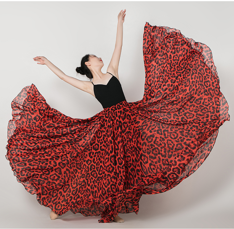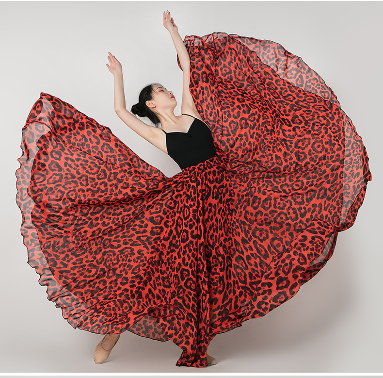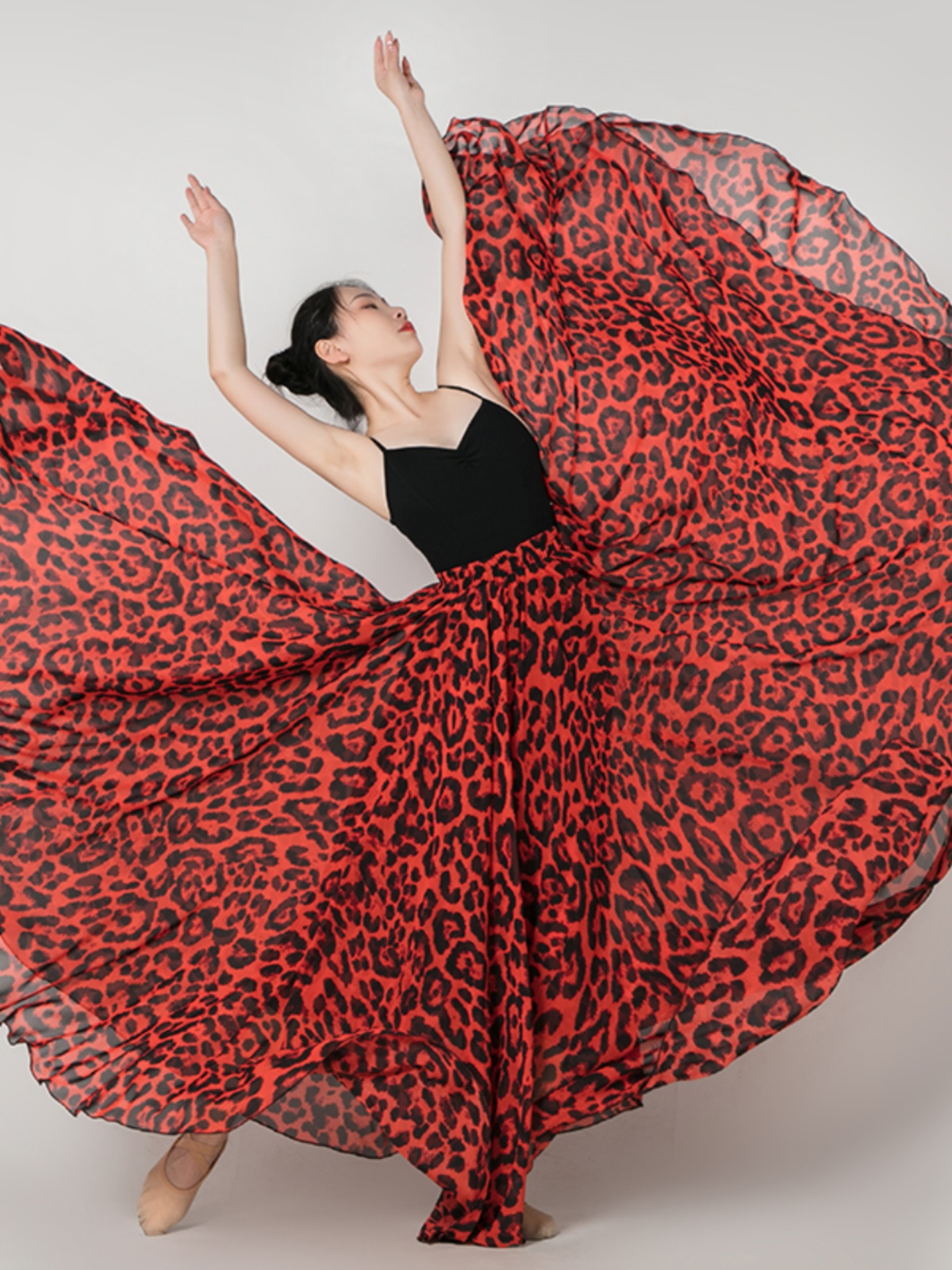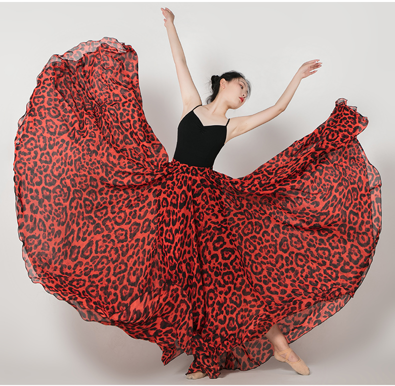 LEOPARD PATTERN MAXI SKIRT, Red Leopad Beach Skirt Outfit, Full Long Chiffon Skirt , Summer Wedding Maxi Chiffon Skirt
