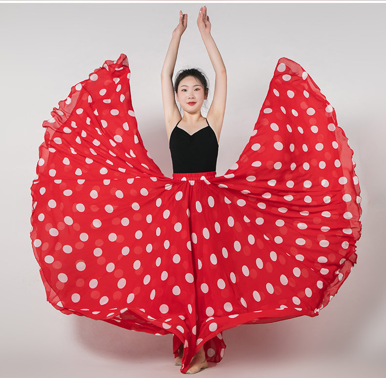 WOMEN CHIFFON MAXI SKIRT POLKA DOT PATTERN CHIFFON SKIRT FULL LONG SUMMER BRIDESMAID CHIFFON SKIRT OUTFIT BEACH PARTY MAXI SKIRT RED POLKA DOT SILKY CHIFFON SKIRT, Full circle and Custom available