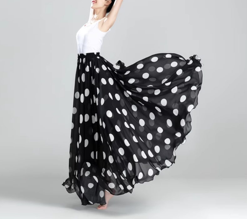 POLKA DOT Chiffon Skirt, Beach Skirt Outfit, Full Long Chiffon Skirt , Summer Wedding Maxi Chiffon Skirt