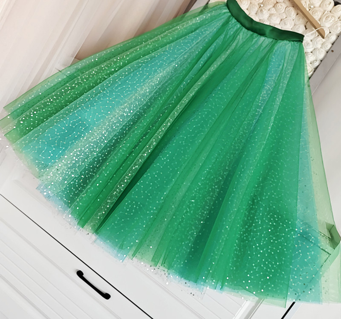 Emerald Green Sequined Tulle Midi Skirt Holiday Outfit Women Sparkly Midi Tulle Skirt Wedding Party Outfit Plus Size Custom