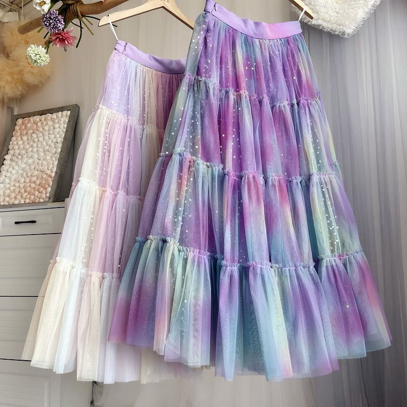 Rainbow Color Layered Tulle Skirt Rainbow Tutu Tulle Maxi Skirt Custom Plus Size Holiday Outfit