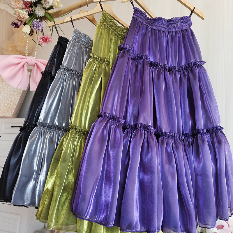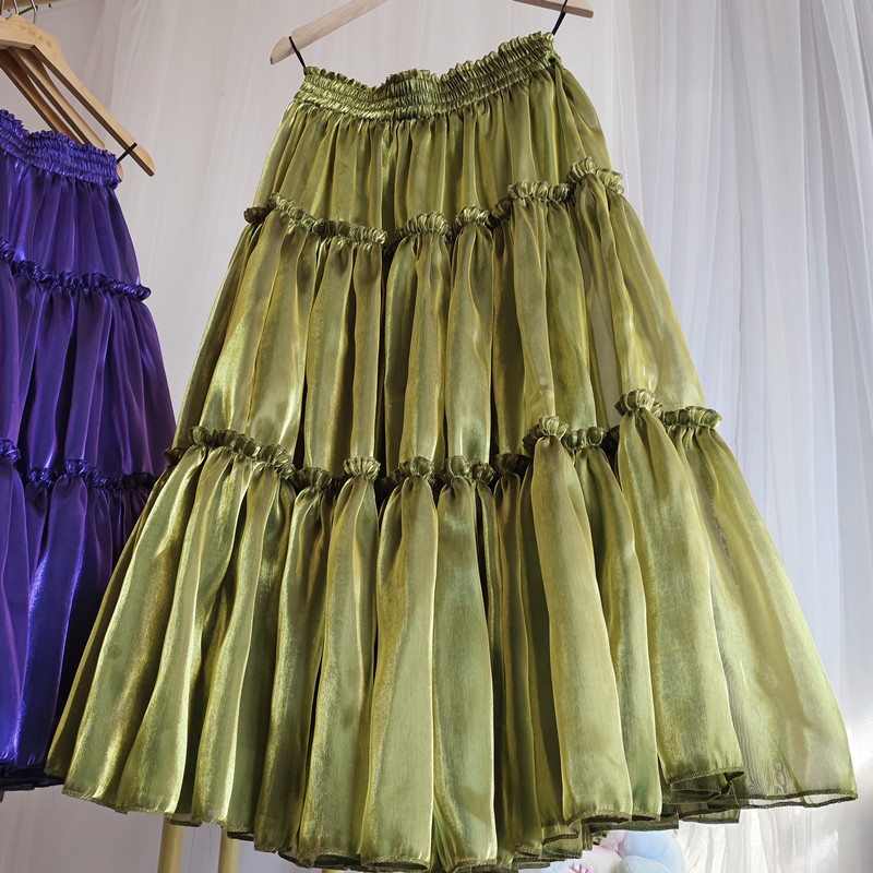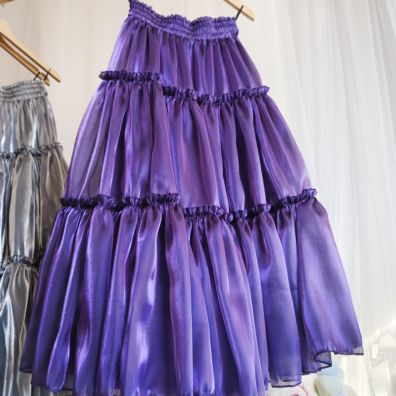 Women Satin Midi Skirt A-line Satin Skirt Taffeta Midi Skirt High Waisted Layered Midi Skirt Women Custom Plus Size Holiday Skirt Outfit