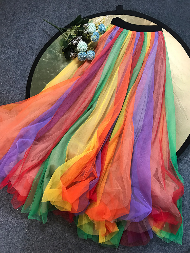 WOMEN GIRL LONG RAINBOW TULLE SKIRT OUTFIT MULTI COLORED RAINBOW TUTU SKIRT CUSTOM PLUS SIZE LONG RAINBOW SKIRT OUTFIT RAINBOW MAXI SKIRT